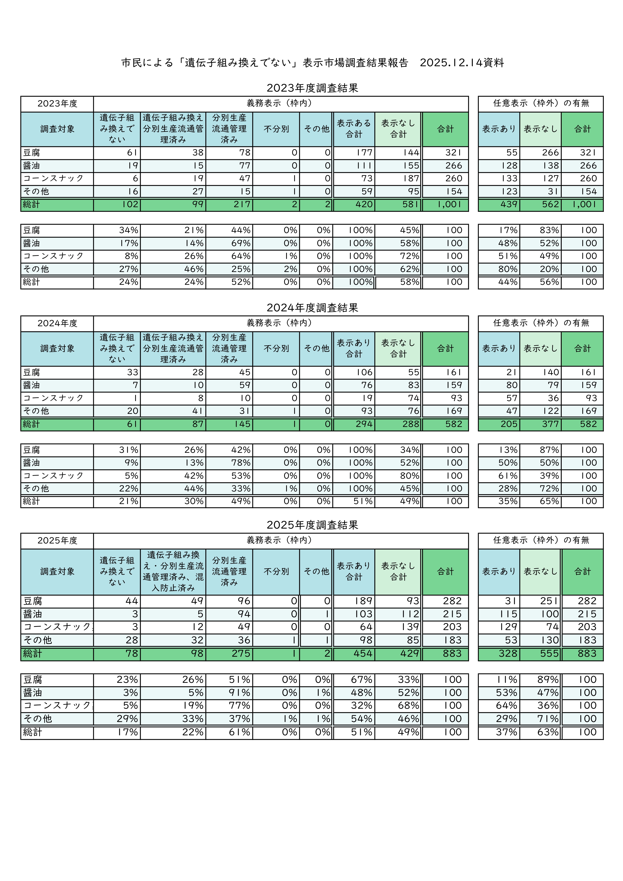 2023_2025市民による「遺伝子組み換えでない」市場調査結果