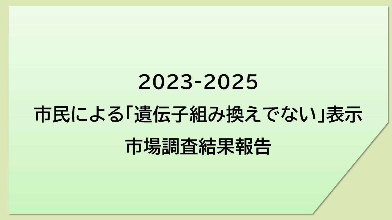 2025年12月14日、2025年度市民による「遺伝子組み換えでない」表示市場調査報告会を開催します。 2023年4月に施行された新たな食品表示制度で、「遺伝子組み換えでない」表示が厳格化されたことをきっかけに、「遺 …[続きを読む]